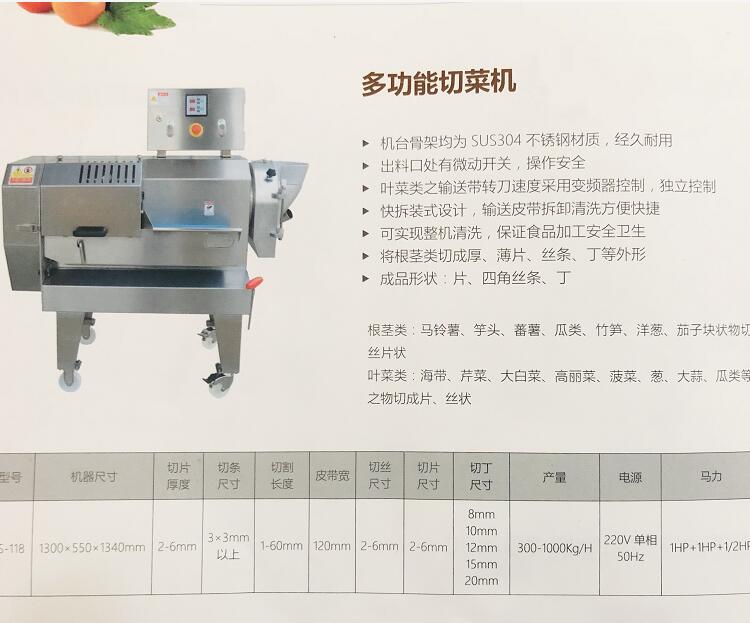 数字变频多功能切菜机,是食堂、中央厨房、果蔬加工单位、净菜加工,快餐连锁、酱菜加工首选设备,
