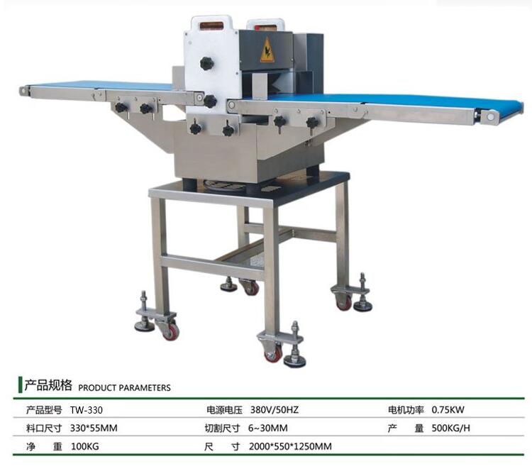 • 产品简介:TW-330切条机切块机 主要用于对鲜肉 微冻肉、禽类(鸡鸭鹅)、鱼类、动物内脏的切片、切条,切块。...