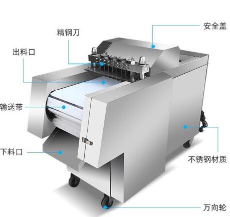 特点:采用仿人工切割的原理 无极变速机构、自动送料,切割均匀,一机多用,可切块 剁段。不锈钢材质,卫生干净抗腐蚀不生锈。